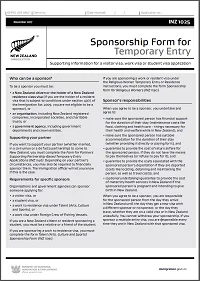 INZ 1025 – Sponsorship Form for Temporary Entry. For Supporting a Visitor Visa, Work Visa, or Student Visa