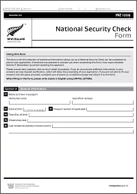 INZ 1209 – National Security Check (NSC) Form