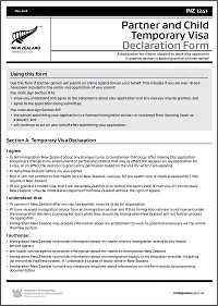 INZ 1241 – Partner/child Temporary Visa Declaration Form