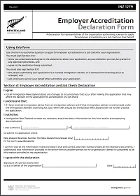 Download INZ 1279 – Employer Accreditation / Job Check Declaration Form
