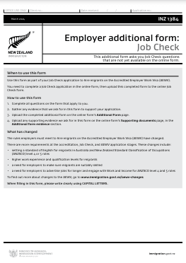 Download INZ 1384 – This Additional Form Asks You Job Check Questions That Are Not Yet Available on the Online Form